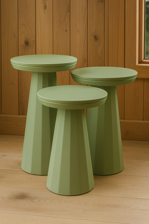 Yeşil Modern Ahşap Vernikli Mantar Yan Sehpa – 3’lü Dekoratif Zigon Takımı