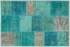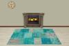 Halinet Yeşil Patchwork Etnik Modern Desenli Yün Hav Toz Vermez Leke Tutmayan Salon Yolluk Mutfak El Dokuma Halı