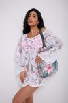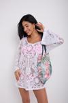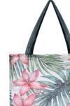 Yaz sezonunun vazgeçilmez parçası olan bu plaj çantası, yeşil ve pembe çiçek desenleriyle göz alıcı bir görünüm sunar.