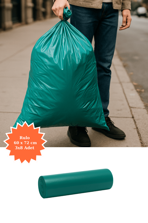 Poshetto Yeşil Rulo Çöp Poşeti 60x72 cm 3x8 Adet Ev Mutfak İş Ofis Avantajlı Paket