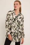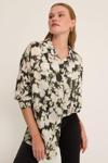 Yeşil Siyah Çiçek Desenli Oversize Saten Gömlek 3985