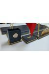 Yeşil Sümen Promosyon Asos Siyah Ve Gold Deriden Oluşan Kişiye Özel İsimlikli Lüks Sümen Ve Makam Takımı