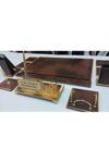 Yeşil Sümen Promosyon Hürrem Kristal İsimlikli Bulut Kahve Ve Gold Deriden Oluşan Premium Sümen Ve Makam Takımı