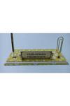 PAPATYA DESENLİ SARI VE BEYAZ DERİDEN OLUŞAN FİRMAMIZA AİT LÜKS TASARIM MASAÜSTÜ İSİMLİKLİ SET KALEM STANDI (32