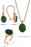 Yeşim Taşlı Rose Gümüş Set