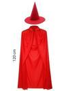Yetişkin Boy 120 Cm Kırmızı Yakalı Pelerin Ve Kırmızı Cadı Şapkası