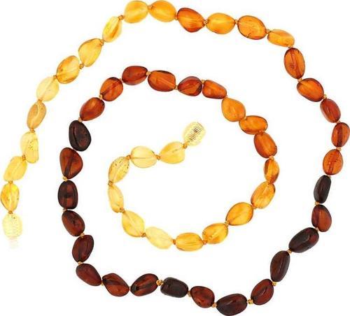 İpek iplikten yapılmıştır, her boncuğun arası ayrı ayrı düğümlüdür. Kehribar kolyelerin arkasında gizli plastik vidalı klips vardır. Kehribarın etkisini göstermesi kişinin bünyesine ve büyüme atağına bağlı olarak 24 ila 72 saat arasında zaman almaktadır. Kehribar kullanıldıkça ve tena temas ettikçe etkisini gösterir. Yetişkinlerde ortalama uygun standart ebat 65cm-70cmdir. Kolyeler herkes için en gözde süsler arasındadır. Kehribar şıklığından ödün vermeyen Yetişkinlerin severek kullanacakları bir aksesuar olacaktır. Ürünlerimizin tamamı el emeği ile üretilmiştir ve değerli taşlar nedeniyle ürün ağırlığında ± %10 sapma olabilmektedir.