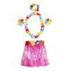 Skygo Yetişkin ve Çocuk Uyumlu Luau Aloha Hawaii Pembe Etek ve Renkli Kolye Taç 2 Adet Bileklik Seti