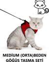 Kaçış Önleyici Nefes Alabilen Yüzey Kedi Gezdirme Göğüs Tasma Seti Kırmızı Kedi Göğüs Tasması, Kedinizin Rahat Etmesini Sağlamak İçin Nefes Alabilen Hava Örgülü (Airfile) Kumaş KullanılmıştıR.