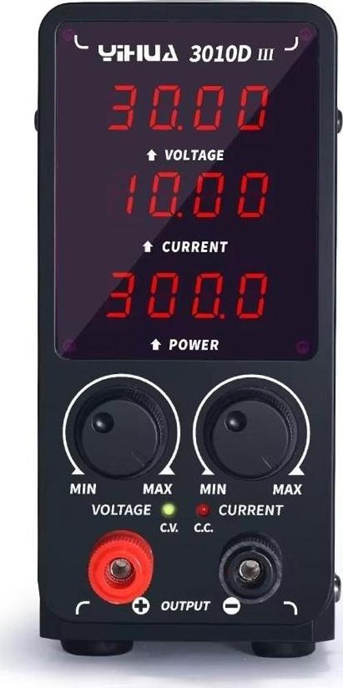 Yihua 3010D-III 30V 10A Ayarlanabilir Güç Kaynağı, çok çeşitli elektronik onarım ve DIY projeleri için uygun, yüksek performanslı, ayarlanabilir bir güç kaynağıdır. Yihua 3010D-III 30V 10A Ayarlanabilir Güç Kaynağı, maksimum 30V ve 10A çıkışı ile çeşitli cihazlar için istikrarlı ve tutarlı bir güç kaynağı sağlayabilir. Yihua 3010D-III 30V 10A Ayarlanabilir Güç Kaynağı, cihazının en önemli özelliklerinden biri, voltaj ve akım ölçümlerinin kolayca okunmasını sağlayan geniş dijital ekranıdır. Döner düğme, çıkış voltajını ve akımını ayarlamayı kolaylaştırır ve ekran, değişiklikleri yansıtmak için gerçek zamanlı olarak güncellenir. Ayrıca hem güç kaynağını hem de güç verilen cihazı korumaya yardımcı olan kısa devre ve aşırı voltaj koruması gibi yerleşik güvenlik özelliklerine sahiptir. Kompakt ve hafif tasarımı taşımayı ve nakliyeyi kolaylaştırır. Isıyı dağıtmaya ve ünitenin serin ve kararlı çalışmasını sağlamaya yardımcı olan dahili bir soğutma fanına sahiptir.