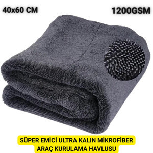 Polham 40x60CM 1200GSM Süper Su Emici Özellikli Mikrofiber Araç Kurulama Havlusu, Çizik ve İz Bırakmaz Bez