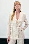 Sateen markasının şıklığı ve zarafeti bir araya getiren bu uzun ceket, yılan deseni ile dikkat çekiyor.