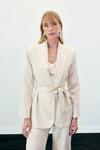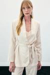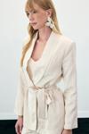 Yılan Desenli Uzun Ceket - Bej