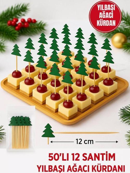 Toyfest Yılbaşı Ağacı Kürdan 12 cm – 50’li Paket | Parti, Sunum, Kanepelik, Tatlı Süsleme Kürdanları