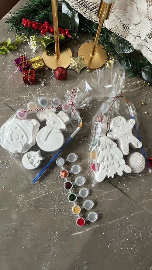• 4 Adet Taş Tozu Figür: Kardan adam, çam ağacı, yılbaşı kurabiyesi, süs objeleri gibi el yapımı taş tozu figürler set içinde yer alır. Her figür dayanıklı, pürüzsüz ve boyamaya hazır olarak gelir.