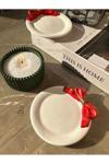Yılbaşı Konsept 2’li Kurdele Görünümlü Dekor Tabak & İnci Tozlu Mum Set | Casa di Duck