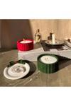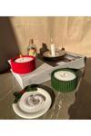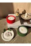 • Casa di Duck yılbaşı özel tasarımı: Kırmızı–yeşil renk paleti ve kurdele detaylı dekoratif tabak ile iki adet yılbaşı konseptli inci tozlu mum, yeni yıl ruhunu modern bir şıklıkla yansıtır.
