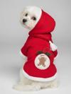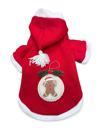 Christmas Ball Kırmızı polar Köpek Kıyafeti, yumuşak polar kumaşı, kapüşonlu yapısı ve beyaz ayıcık karakter figürüyle küçük ırk köpekler için özel olarak tasarlanmıştır.