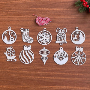 BUFFER® 10 Parça Kırmızı Beyaz İpli Karışık Model Ahşap Yılbaşı Ağaç Süsü