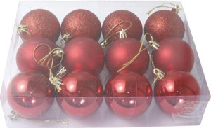 Yılbaşı Süsü Çam Ağacı Topu 12'li Noel Küresi 6 cm Kırmızı
