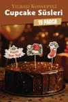 Tuğset Etiket Yılbaşı Yeni Yıl Kış Temalı Cupcake Süsü Kürdan Süsleri Lüks Büyük Boy 19 lu Paket Pasta-T1519