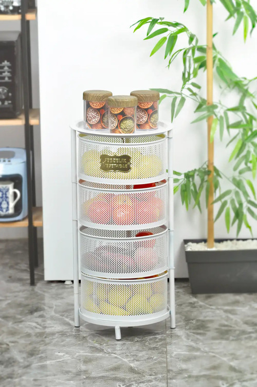 YILDIRAY METAL BEYAZ 4 KATLI TEKERLEKLİ SEBZELİK