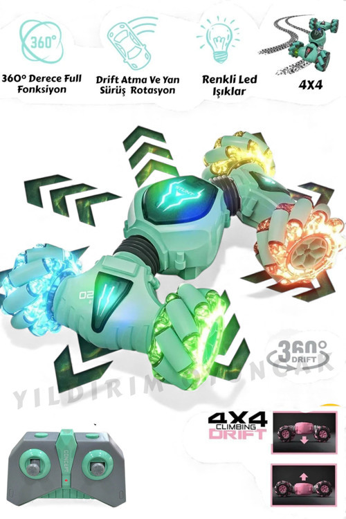 Yıldırım Oyuncak 2.4 Ghz Bilekten Kontrol Ve Uzaktan Kumandalı Işıklı 4X4 Çift Kumandalı Drift Atan Akrobat Araba