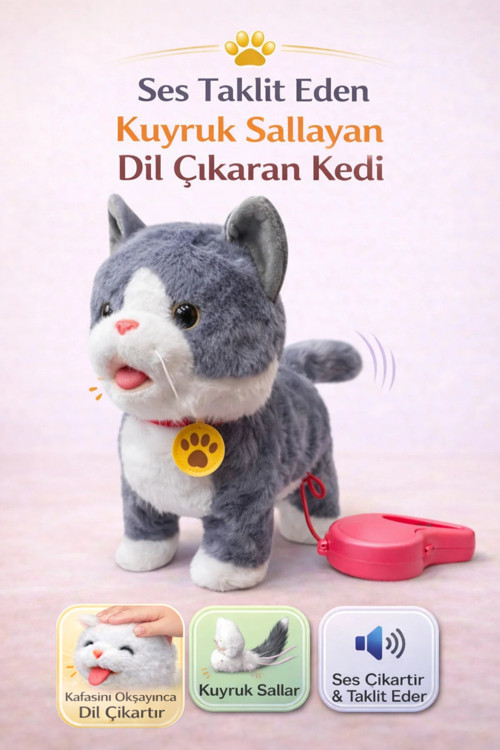 Şarjlı Kumandalı İnteraktif Peluş Kedi | Ses Taklit Eden Yürüyen Kuyruğunu Sallayan ve Dil Çıkaran