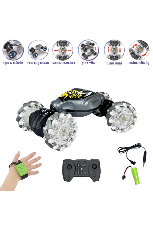 OyuncakÖzellikleri Ürün İsmi: Uzaktan Kumandalı, El Sensörlü Akrobat Araba Ürün Kodu: 30001004 Renk: Mavi Ana Malzeme: Plastik Şarj Edilme Süresi: 90