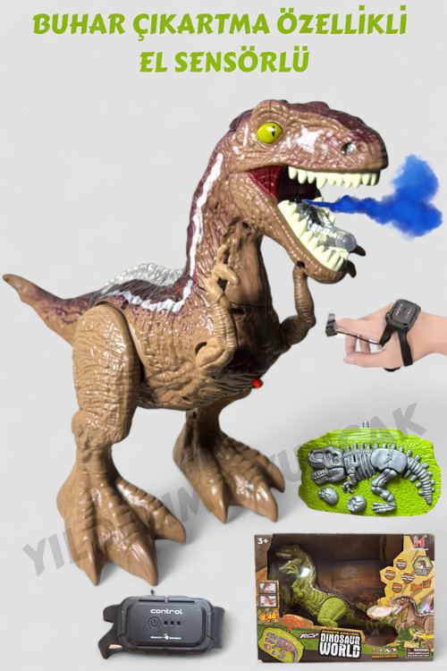 Yıldırım Oyuncak Uzaktan Kumandalı El Sensörlü Buhar Atan Sesli Işıklı 360 Derece Fonksiyon Dinazor 30 Cm