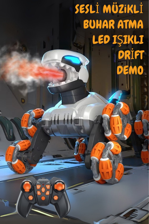 Yıldırım Oyuncak Uzaktan Kumandalı Full Fonksiyon 8 Teker Buharlı 2.4G Şarjlı Dinozor Akrobatik Araba 24 Cm