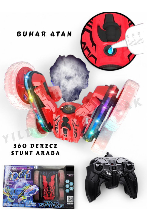 Yıldırım Oyuncak Uzaktan Kumandalı Full Fonksiyon Şarjlı Işıklı, Buharlı Sprey Atan 360 Stunt Araba Akrobatik Ledli