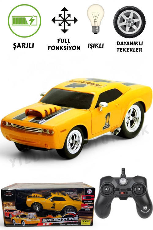 Yıldırım Oyuncak Uzaktan Kumandalı Şarjlı Sesli Işıklı Full Fonksiyon Drift Atabilen Spor Araba Sarı 26 Cm