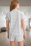 Yumuşak ve nefes alan bir uyku deneyimi için tasarlanan bu pijama takımı, gri melenj üzerine işlenmiş yıldız deseniyle dikkat çekiyor. 70% polyester ve 30% pamuk karışımı, hafif ve konforlu bir his sunar. Regular kalıp, her vücut tipine uygundur ve gün boyu rahat hareket etmenizi sağlar. Kısa kollu gömlek ve boru paça şort, yaz aylarında ideal bir tercih. Metraj baskı tekniğiyle uygulanan desen, kaliteli ve uzun ömürlüdür. Makinede 60 derecede yıkanabilir olması pratik kullanım sağlar.