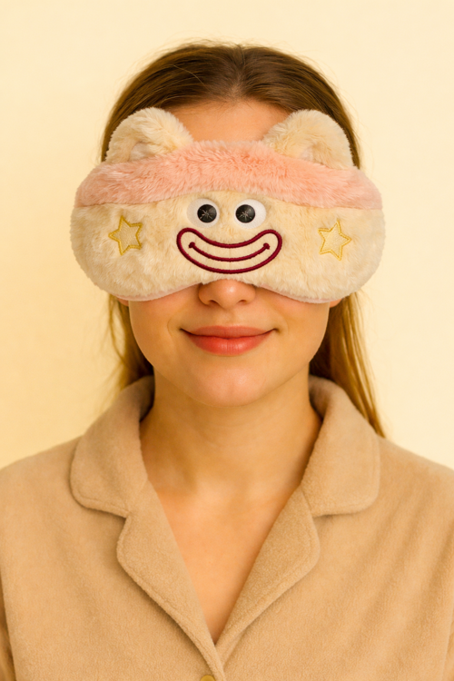 Üzerindeki eğlenceli yüz ifadesi, kulak detayı ve yıldız nakışları ürüne sevimli ve dikkat çekici bir görünüm kazandırır. Esnek bant yapısı sayesinde başı sıkmadan rahat bir kullanım sunar ve farklı baş ölçülerine kolayca uyum sağlar. Evde dinlenirken, seyahatlerde veya kısa molalarda gözlerinizi rahatlatmak için ideal bir aksesuardır.