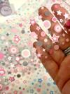 - Pastel pembe, lila, mavi, gri ve soft tonlarda galaxy/konfeti görünümü