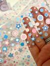 Pastel Yıldız Şekilli PET Washi Bant, gökyüzü ve konfeti havasını sayfalarınıza taşımak için tasarlandı. 2 metre uzunluğunda ve 6 cm genişliğindeki bu özel bant, üzerinde yer alan 323 farklı geometrik stickerın her birinden 4 farklı renk olmak üzere toplam 1292 adet tek tek çıkartmalı sticker içerir.