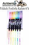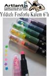 Artlantis Yıldızlı Fosforlu Kalem 6 Renk 1 Paket Yıldız Baskılı İşaret Kalemi Pullu Yıldız Şekilli Damga Kalemi Sevimli Mühürlü