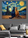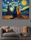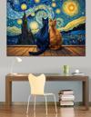 Yıldızlı Gecede Oturan Kediler Dekoratif Kanvas - Mdf Ahşap Tablo