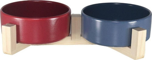 Yılmazel Mama-su Kabı Ahşap Standı Ve Seramik Kasesi Yavru Evcil Hayvan Minimalist Design Çift Hazneli