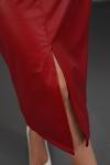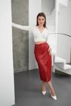 Yırtmaçlı uzun deri etek bordo rengiyle şıklığınızı tamamlıyor.