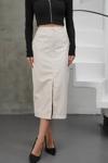 Yırtmaçlı uzun deri etek krem, şık ve iddialı bir görünüm elde etmek isteyen kadınlar için ideal bir seçenektir.