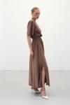 Yırtmaçlı Uzun Etek - Kahve