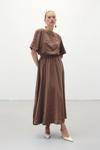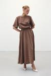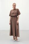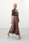 Sateen Yırtmaçlı Uzun Etek - Kahve