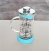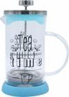 Bitki çay / kahve demliği french press MAVİ350 ml. Süzgeçli filitreli cam gövde krom kapaklı