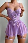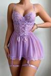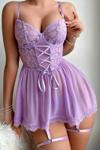 YNT Lila Örgü Detaylı Gecelik 15698 Bedenler : S/M -/XL - 2XL/3XL Not : Hijyen kuralları nedeniyle ürünlerde değişim ve iade kabul edilmemektedir.