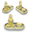 Altın tonlarıyla göz alıcı bir dekoratif obje olan ürün, hem çubuk tütsü hem de tealight mum kullanımı için uygundur.