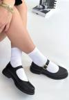 YAZKIŞ Siyah Ten Rugan  Küt Burun Taşlı Atkılı Babet - Image 1