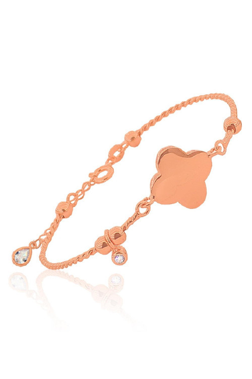 925 ayar gümüş rose zirkon taşlı ince bulgu yonca figürlü bilezik & bileklik