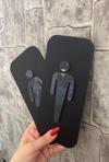 Parlak antrasit pleksi ve mat siyah pleksi materyal kullanılarak kabartmalı şekilde üretilmiştir.